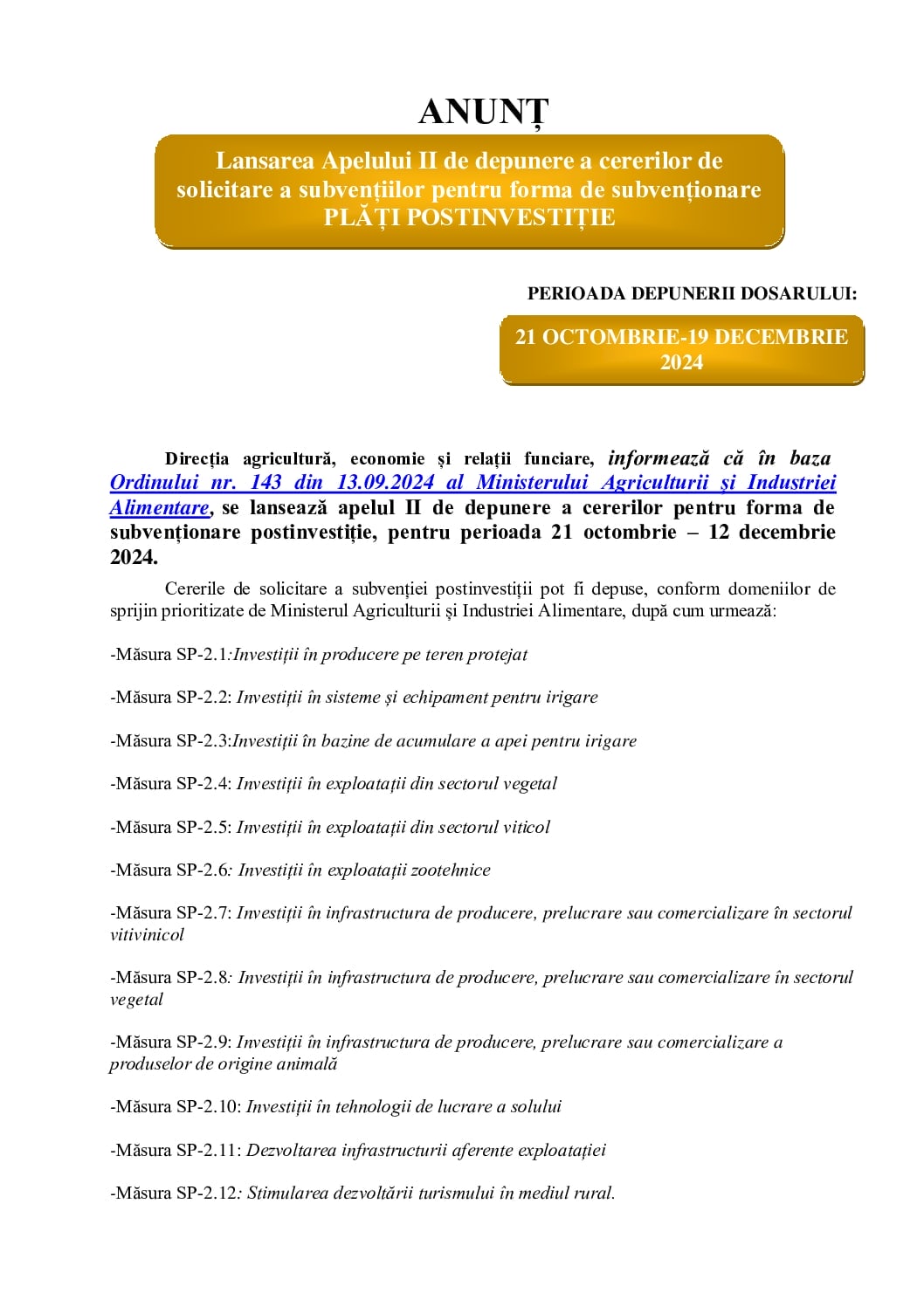 PERIOADA DEPUNERII DOSARULUI PLĂȚI POSTINVESTIȚIE