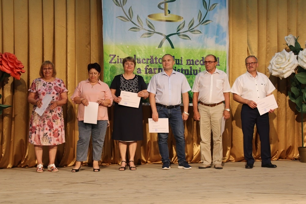 În aplauzele asistenței, dl Anatoli Ichim a înmânat Diplome de onoare din partea Ministerului de resort, din partea Consiliului raional unui grup de lucrători din domeniul sănătății al raionului. Medicii și farmaciștii au fost felicitați și de vicepreședintele raionului, Iurie Mihăescu, cu un mesaj emoționant către colegi a venit directorul Spitalului raional, Anatolie Răcilă, care la fel, i-a menționat cu semne de gratitudine pe cei mai buni lucrători.