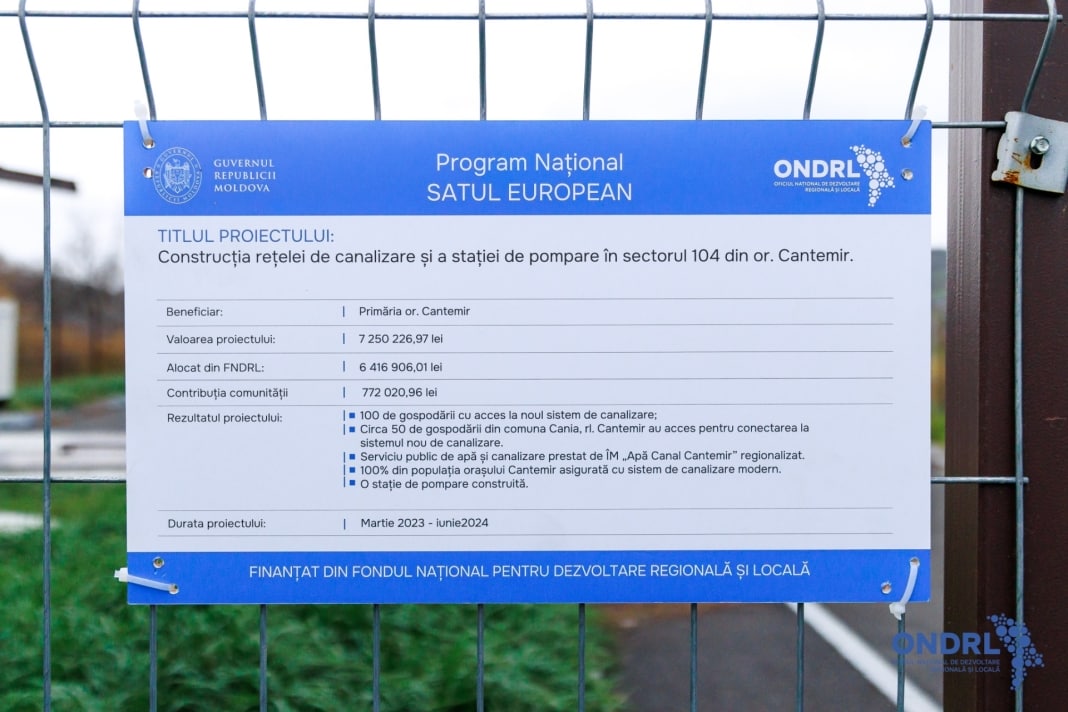 Raionul Cantemir continuă să se dezvolte prin proiecte implementate cu succes, un exemplu elocvent este finalizarea proiectului „Construcția rețelelor de canalizare și a stației de pompare în sectorul 104 al orașului Cantemir”, realizat în cadrul Programului Național „Satul European”, ediția I – 2022, cu sprijinul Fondului Național pentru Dezvoltare Regională și Locală (FNDRL).
